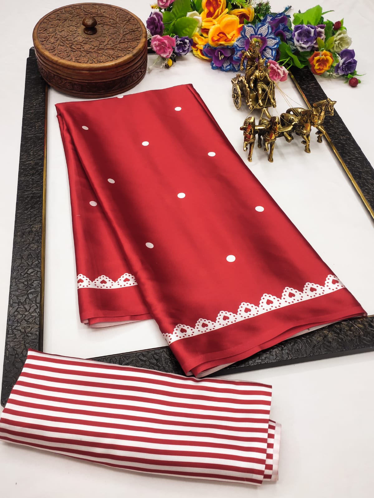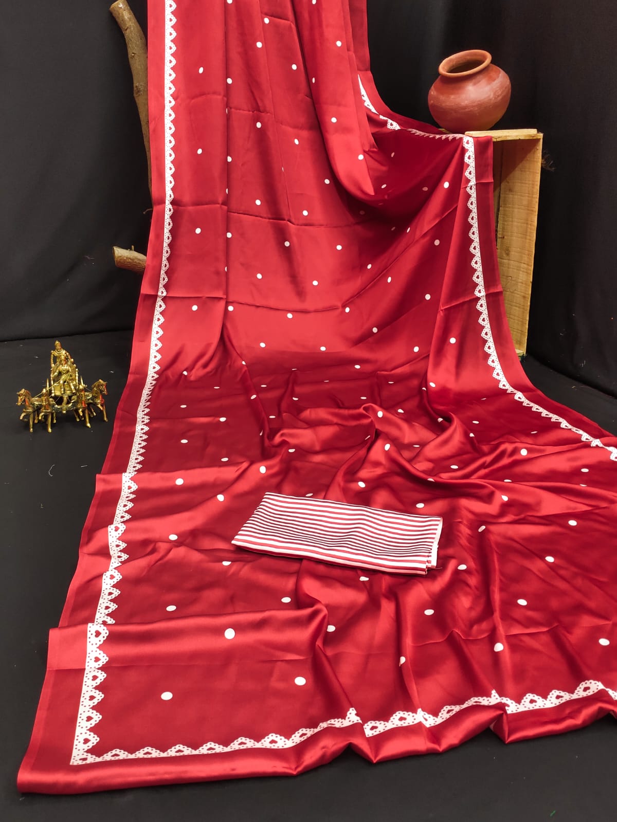 Drape yourself in timeless charm with the all-new Sudha saree – made from Original Japan Satin (Devsena satin), known for its rich texture and natural shine. Finished with elegant digital print work and a matching blouse, this saree brings effortless grace to your wardrobe at an unbeatable price.